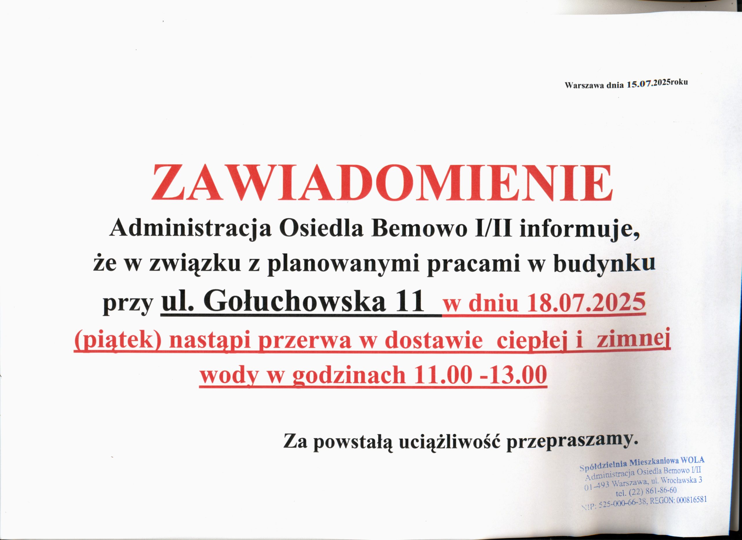 W pierwszej etapie będą prowadzone roboty w piwnicach (wymiana poziomów wody), prosimy o uprzątnięcie przedmiotów z korytarzy piwnicznych oraz boksów, przez które przechodzi instalacja wodno-kanalizacyjna.
